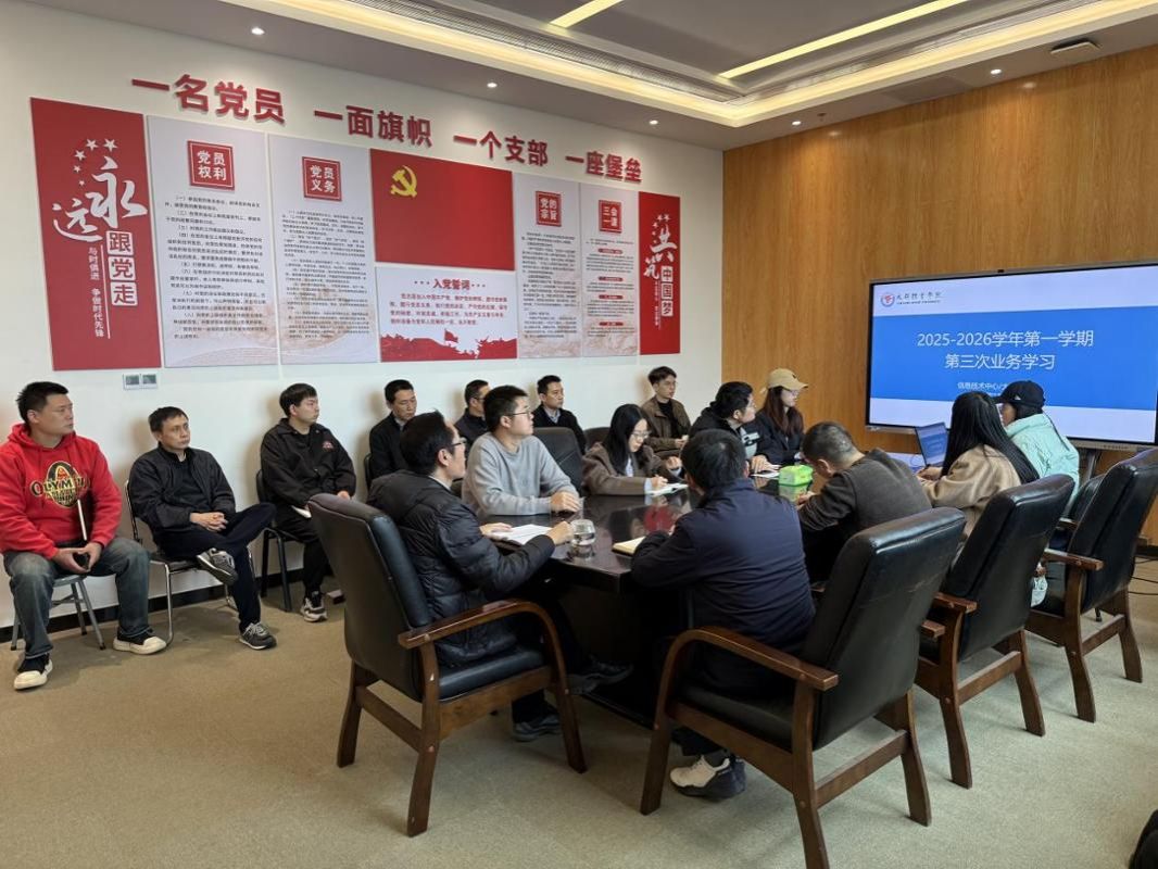 根据学校《关于组织开展2025-2026学年第一学期第三次业务学习的通知》工作安排,信息技术中心/大数据中心于11月14日下午在图书馆六楼会议室开展了业务学习。会议由信息技术中心/大数据中心主任张牧主持。部门教职员工参加会议。